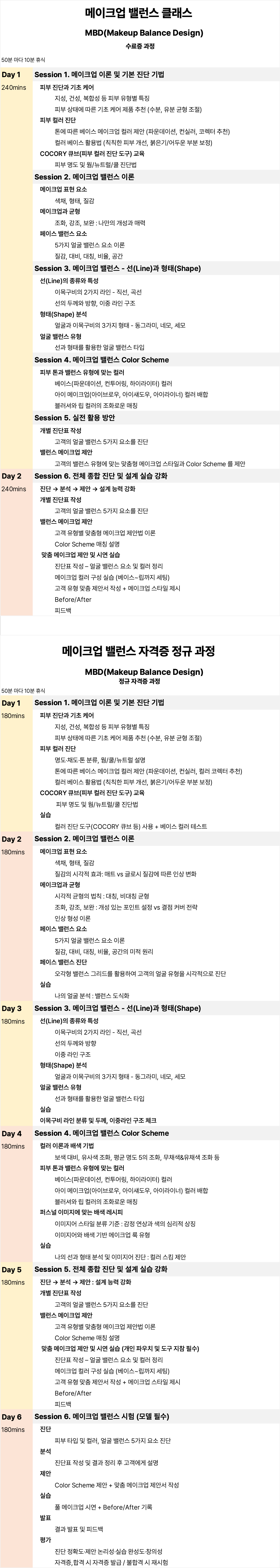 과정명 | 메이크업밸런스디자인 클래스 | 메이크업밸런스디자인 자격증 과정 |
