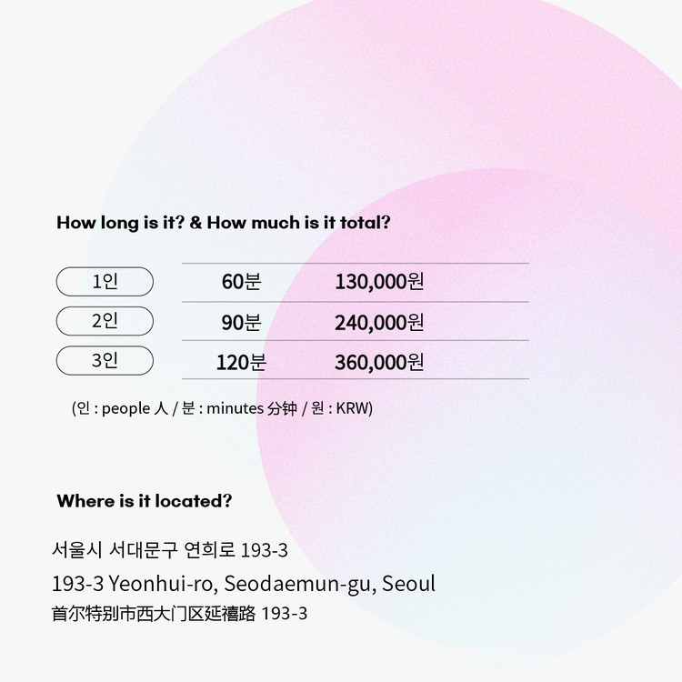 - 해외에서 오시는 경우, 비행기 지연 등의 변수가 발생할 수 있으므로 한국에 도착일 예약은 가급적 피해주세요.